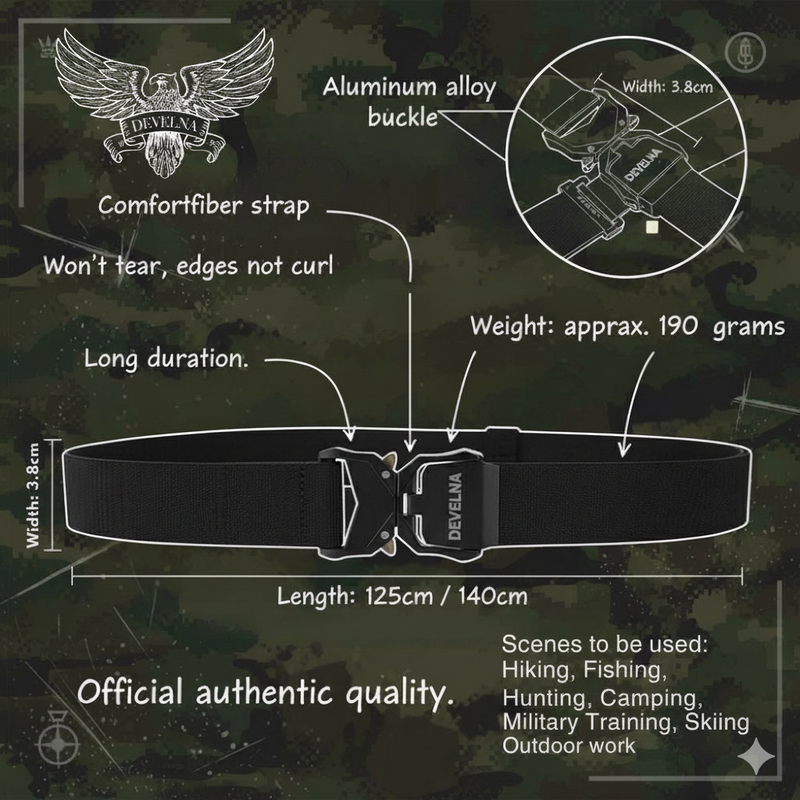 Introducing the DEVELNA Tactical Belt – engineered with military-grade durability, exceptional load-bearing strength, and designed for everyday tactical performance in the field or on duty.